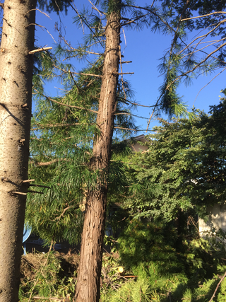 本日も引き続き一人で伐採作業をいたします。 本日からは8mの高木の木が並びますので、枝が折れないものを慎重に選んで作業いたします。