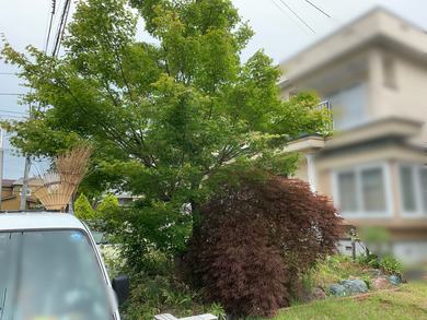 本日は午前1件、午後1件の作業とお見積1件の計3件に伺いました。 午前中1件目のお客様はヤマモミジとベニシダレモミジの伐採をご依頼いただいたお客様です。次の日の作業の為に伐採木の投棄も午前中に完了させたいと存じます。