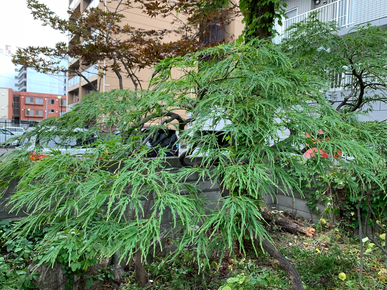 本日1件目はご新規でご依頼をいただきましたお客様で山紅葉の剪定、枝垂れ紅葉の剪定のご依頼をいただきました。 お見積り時からご丁寧に対応していただき、誠にありがとうございます。本日も心を込めて剪定を行いたく存じます。